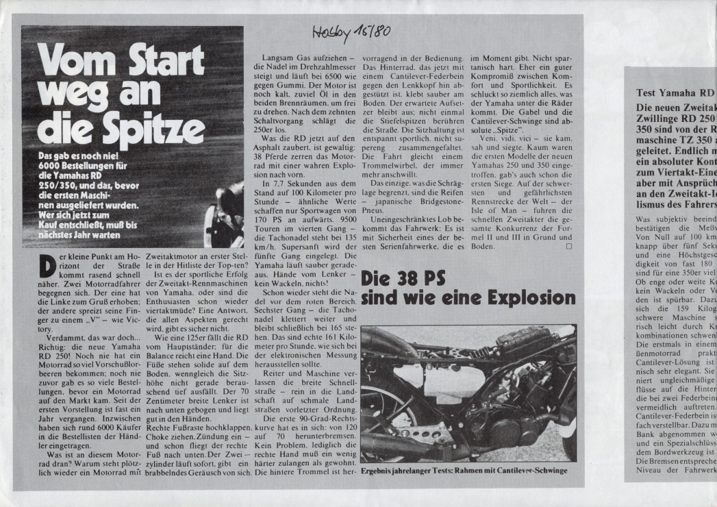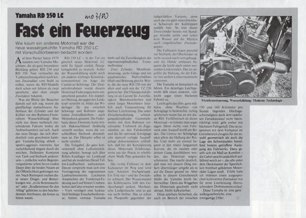 1980, la RD350LC fût sacrée "Machine of the Year"