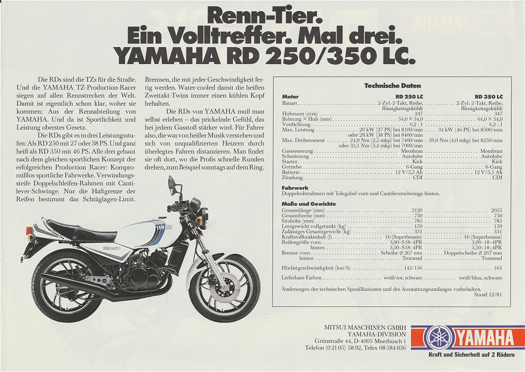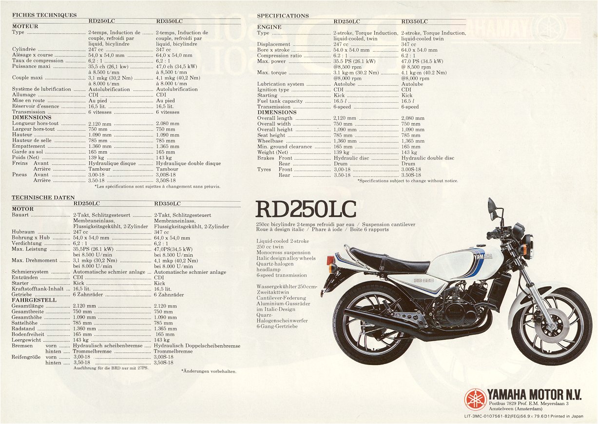 RD350LC MODELE 4L0 1982 sans YPVS 47CH@8500tr/min & 4.1m.kg@8000tr/min