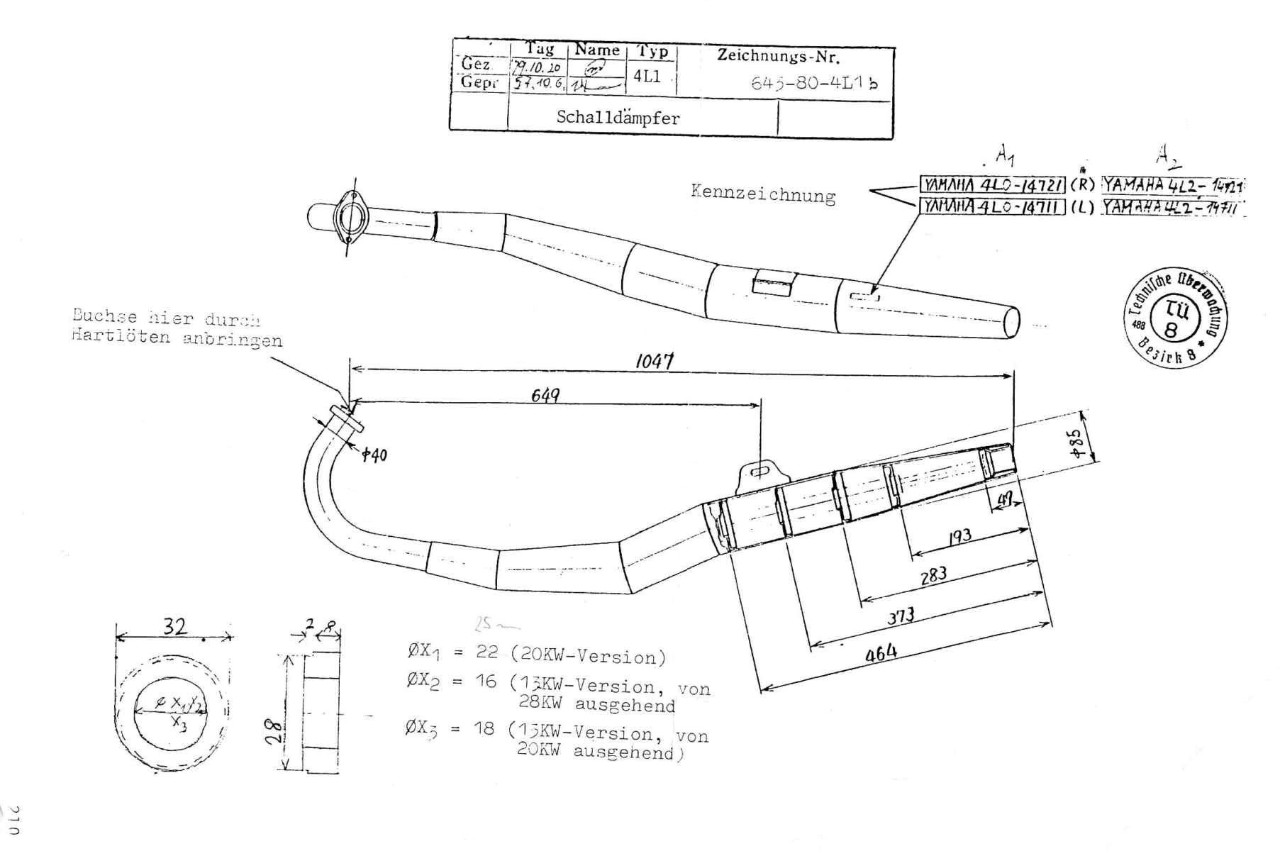 PIPES DRAWING of German 50HP RD350N2/F2 (with a restrictor welded at