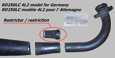 PIPES DRAWING of RD350LC2 31W German 50HP RD350LC2 (with a restrictor