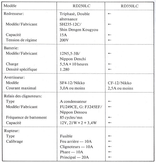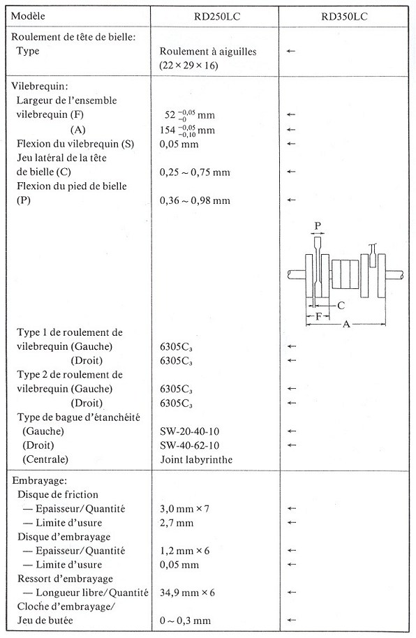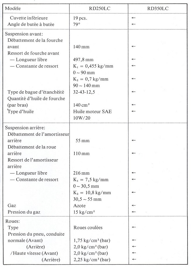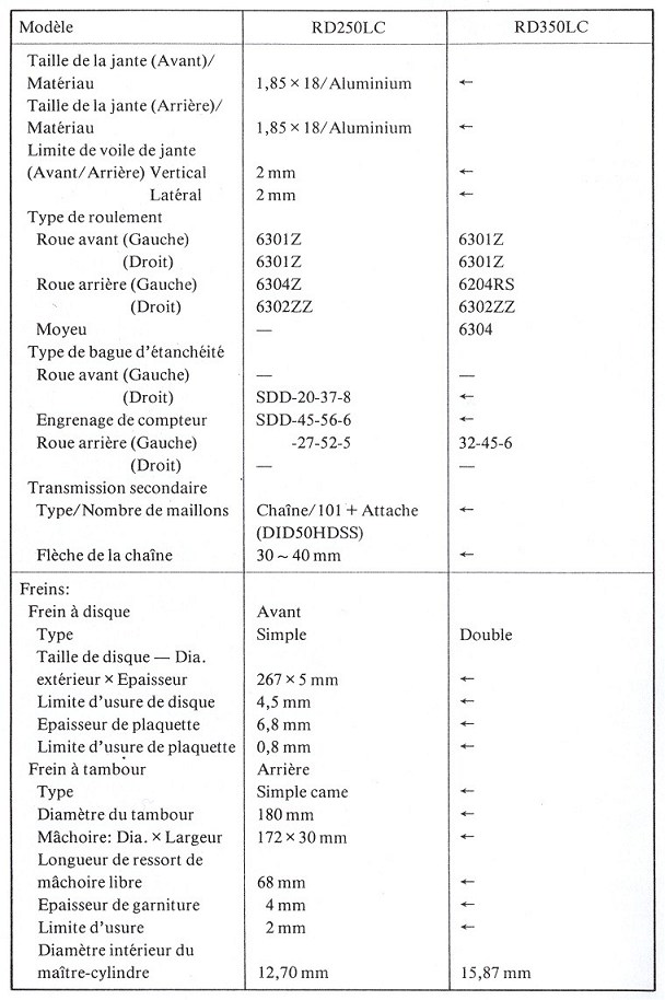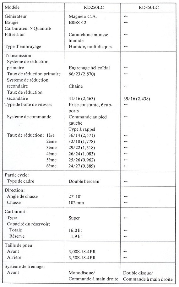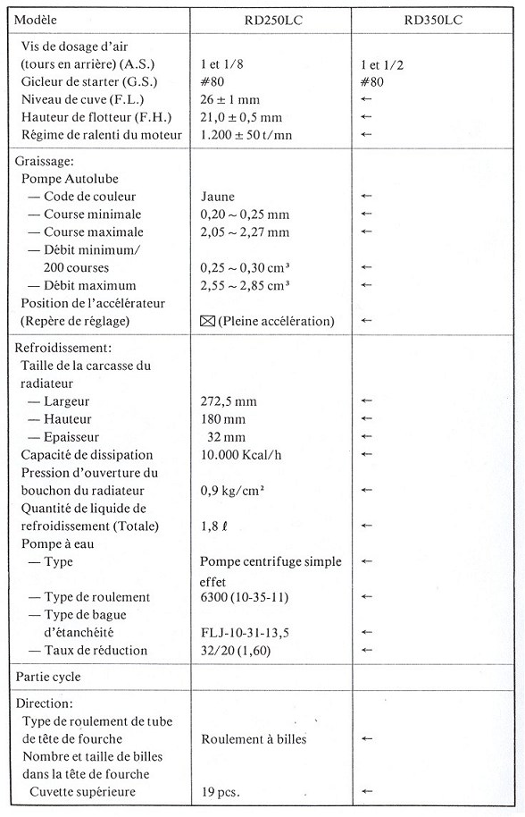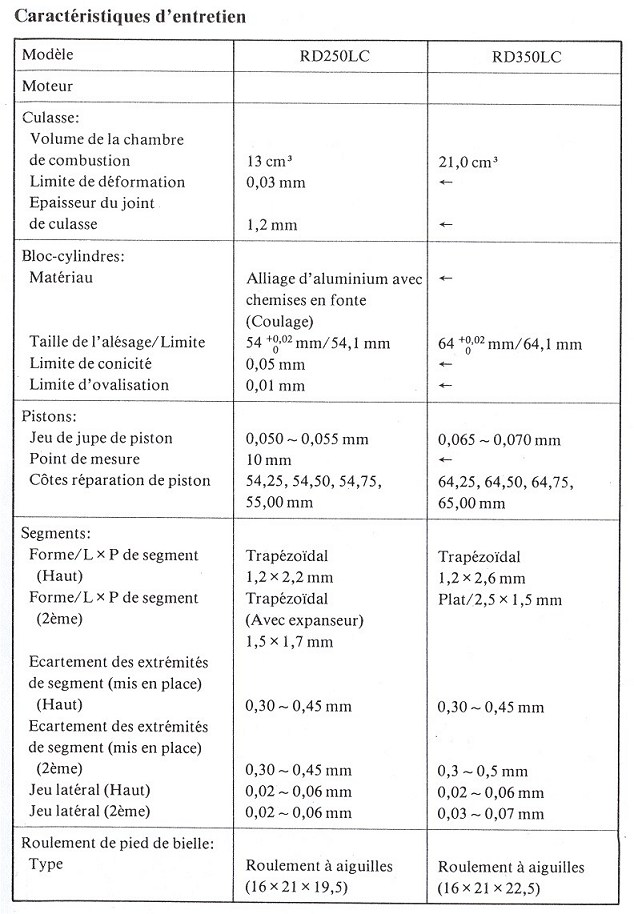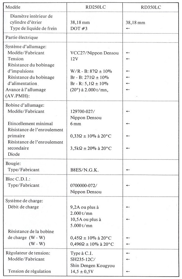 SPECIFICATIONS TECHNIQUES EXTRAITES DES DOCUMENTS "YAMAHA SERVICE INFORMATION"