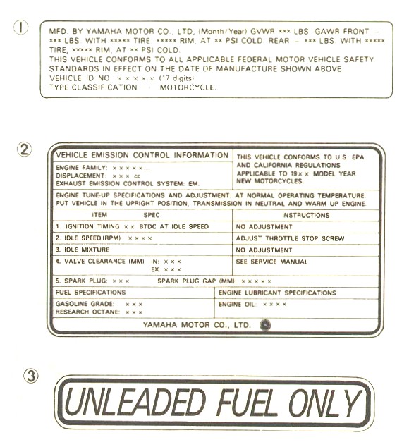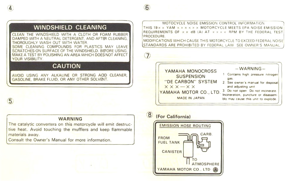 AUTOCOLLANTS AVERTISSEMENTS / INFORMATIONS SUR MOTO NEUVE.
