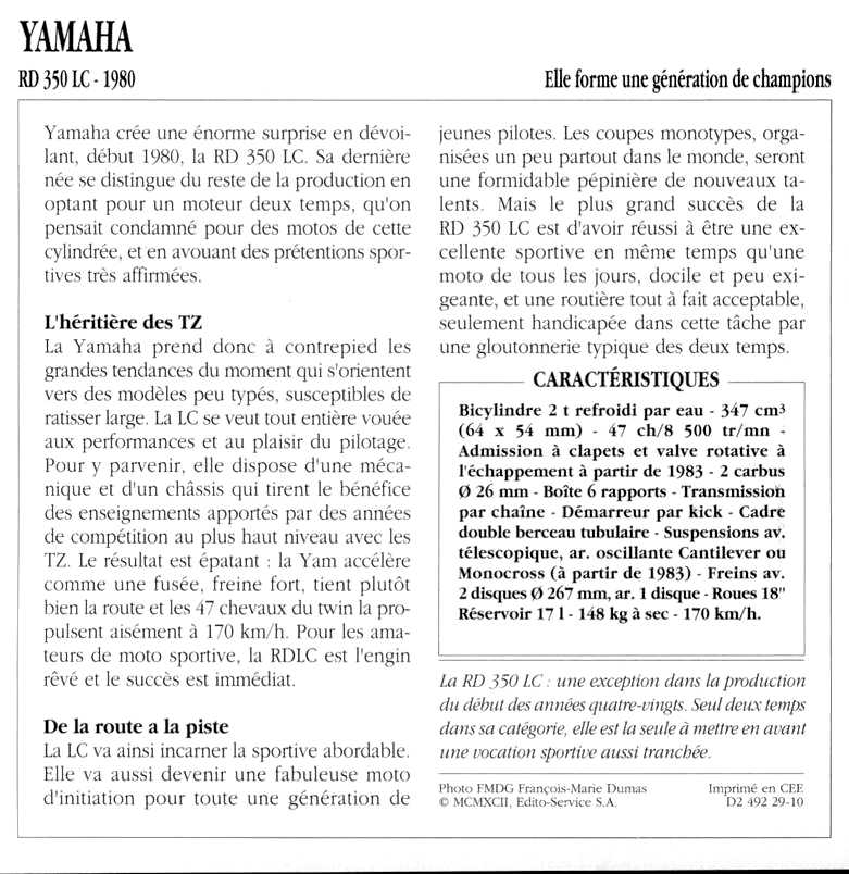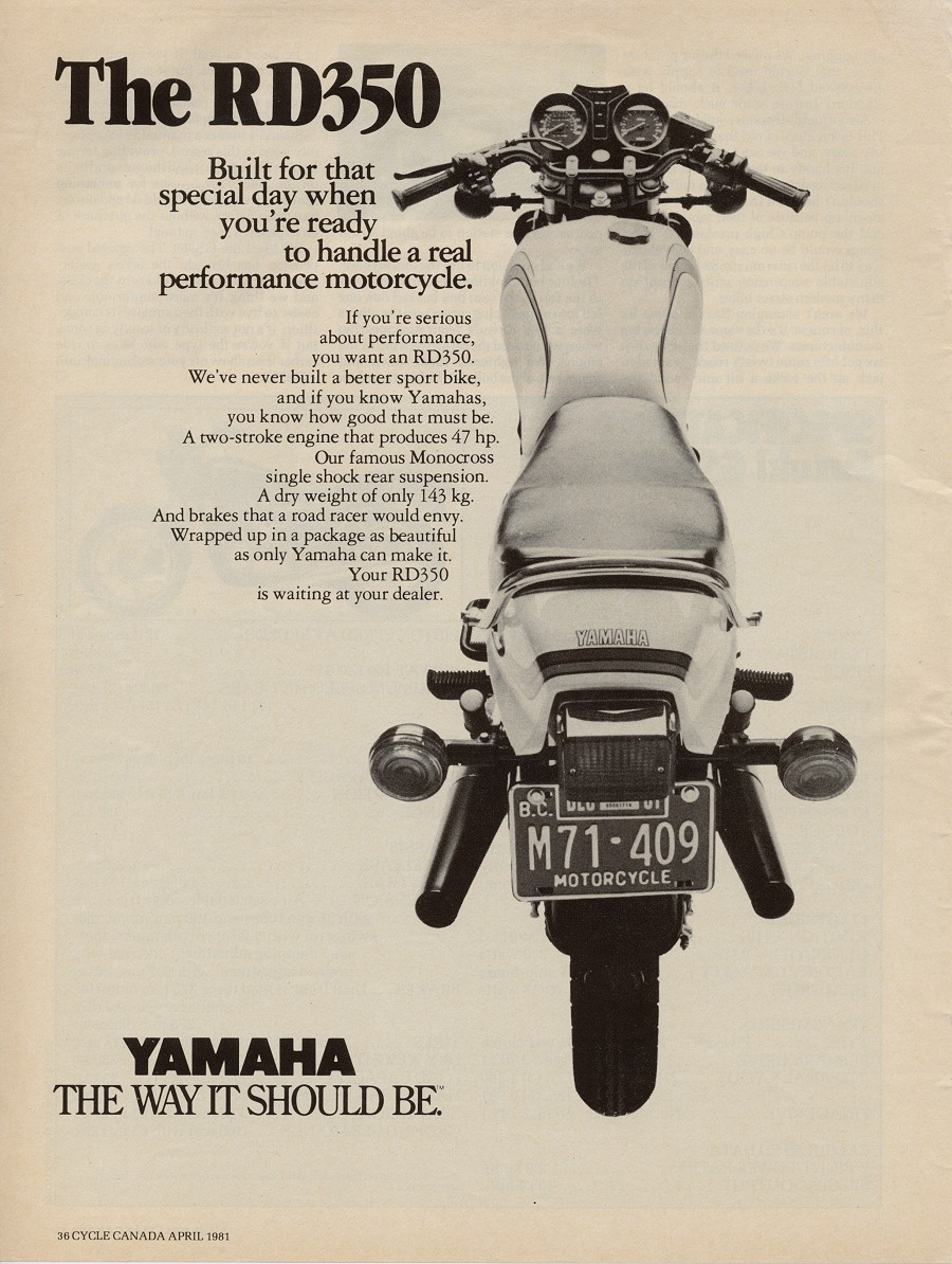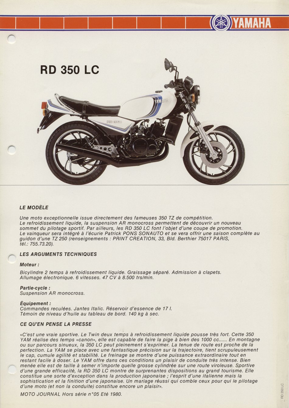 RD350LC 1980 to 1982 Without YPVS 47hp@8500rpm & 4.1m.kg@8000rpm