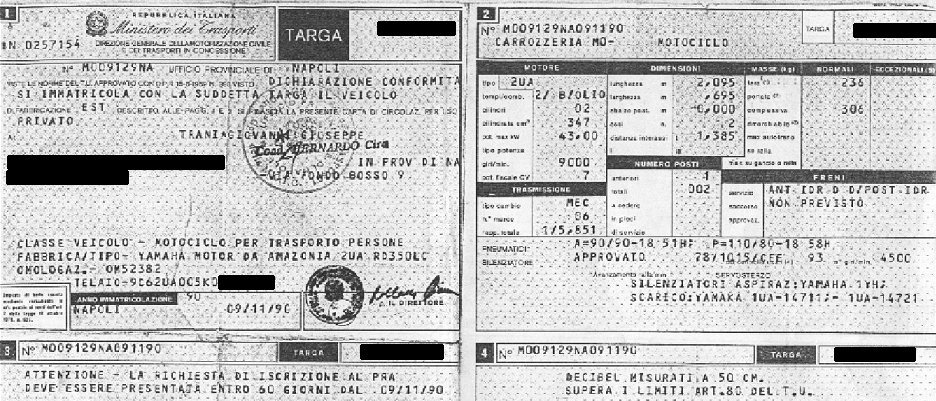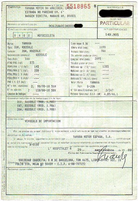 Look papers of an ITALIAN RD350F2 2UA and from a SPANISH RD350F2 2UA.