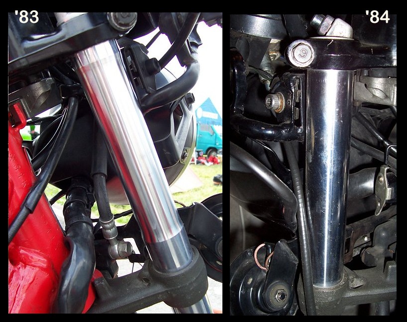 On RD350LC2, fork tube had a reduced diameter between the upper and the under bracket on '83 model. Part number is 29L-23110-00 '84 model is straight and part number is 31K-23110-00 |